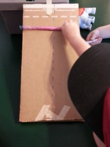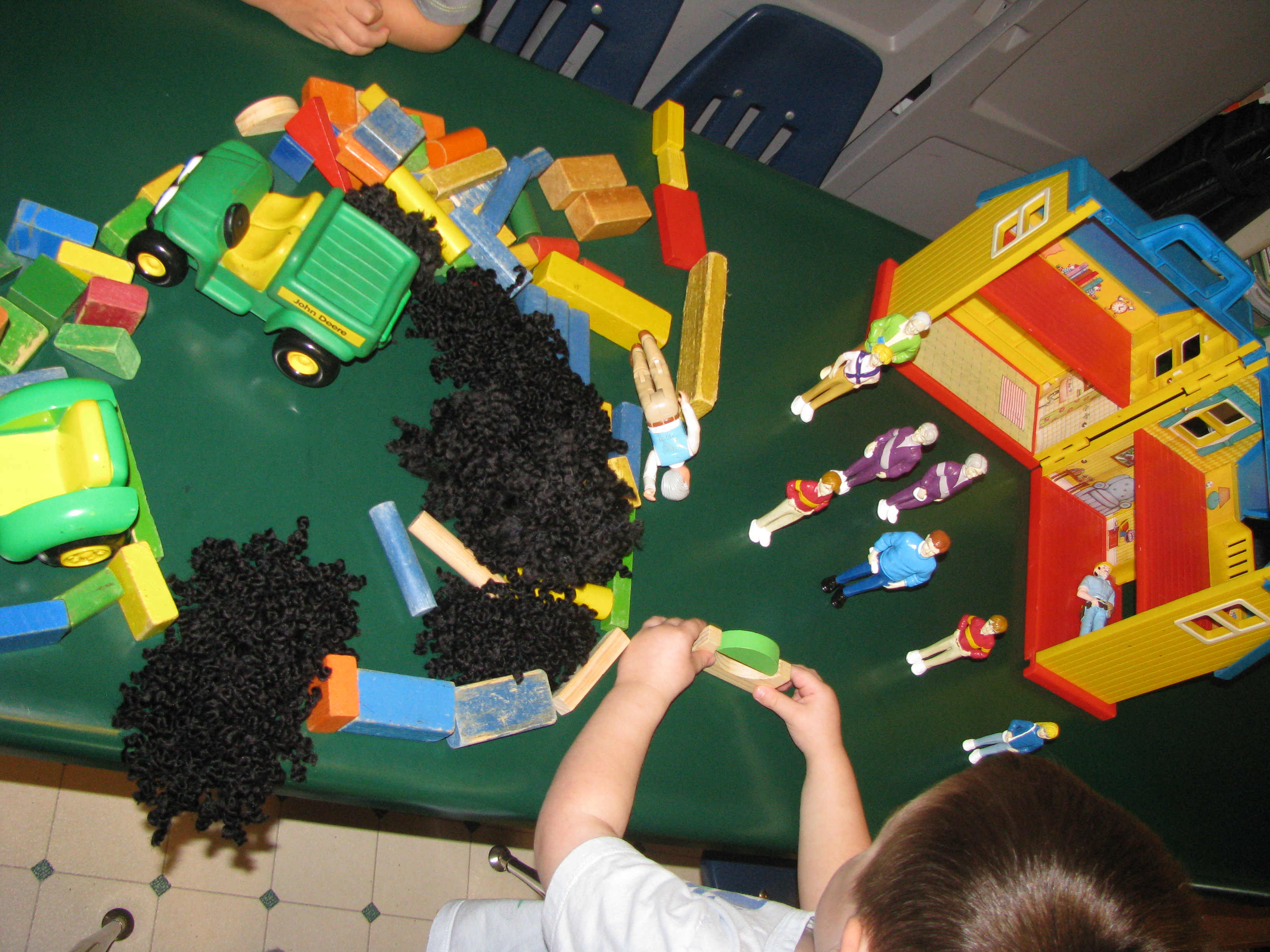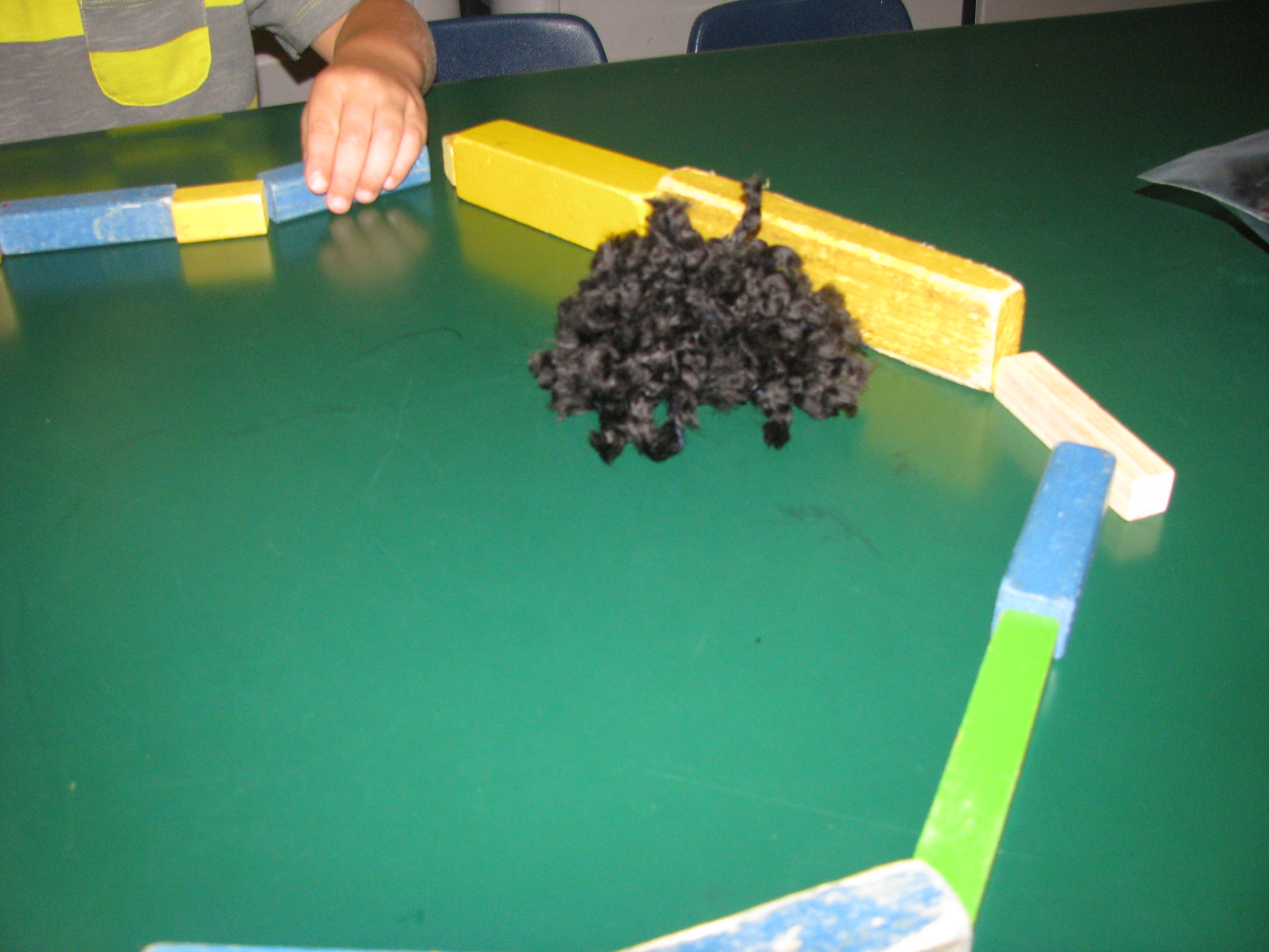 As you can see, our fence-building had an spin-off of adding tractors, houses, people and a ‘barn’ created by Macoy age 2. I was pretty proud of their creativity. And Ben finally came around after the initial tentativeness towards the pom poms. Yes, he thought they really were spiders. Glad we were able to coax him back to the fun. 🙂