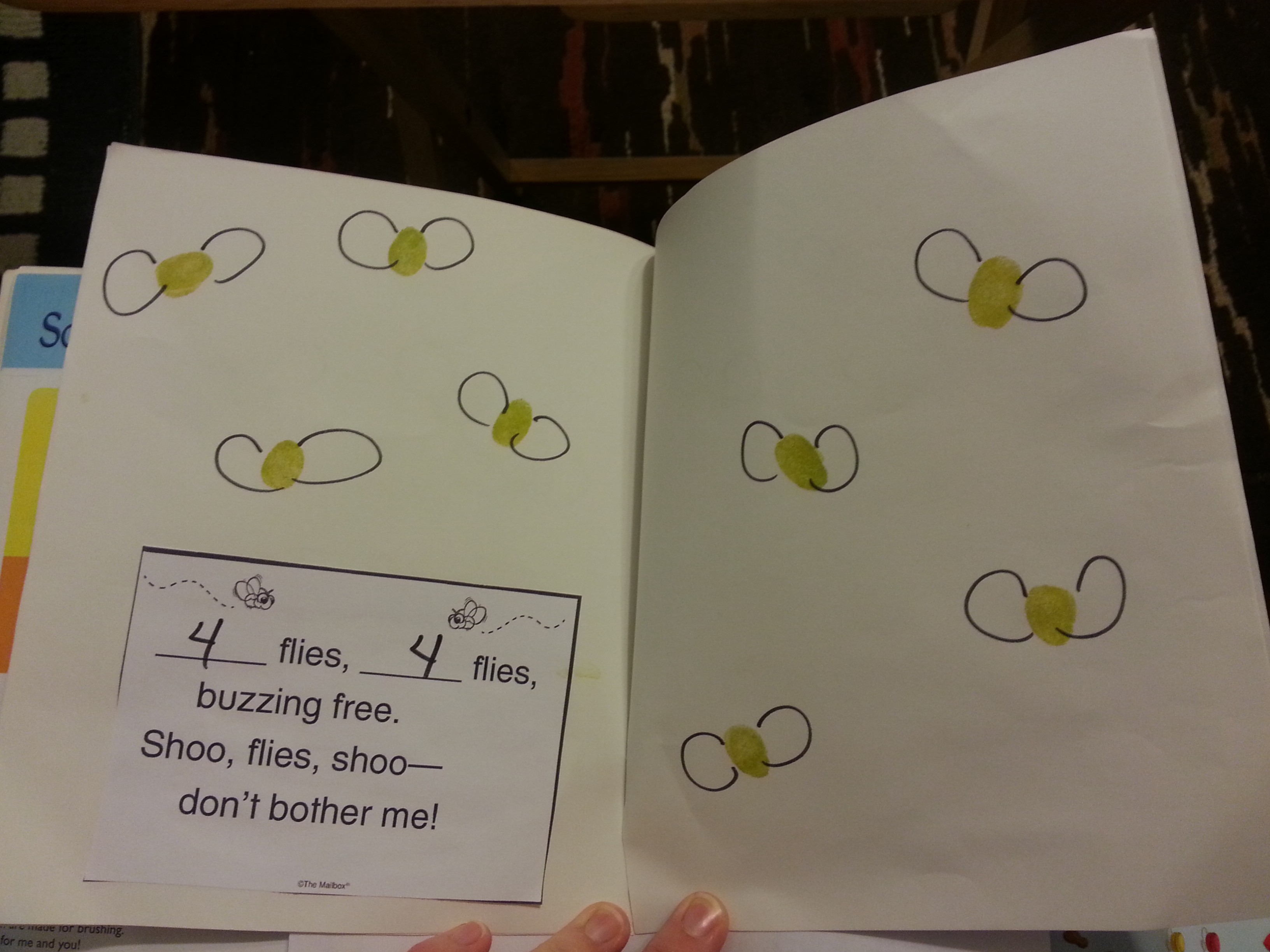 The Baa Baa Black Sheep day was the most fun for them I think. The tactile experience went way better with these homemade pom poms than with a store bought variety. I found they will also transform into great spiders come Halloween!