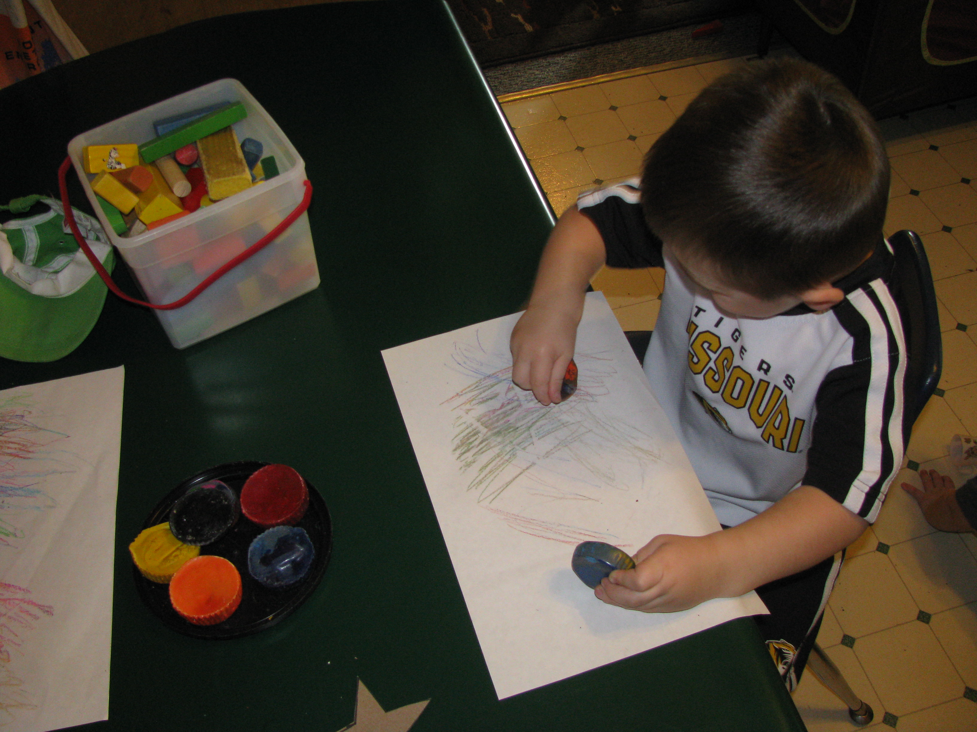 That is a popular question we’ve all been known to ask our children when we pick them up from school. So for your information, we had a Music with Math week here at the daycare. We used 4 popular children’s nursery rhymes to accomplish our learning theme. This Old Man began our week with a “rolling home” activity. Check out the pic with a pencil decorated as an Old Man rolling down the ramp.