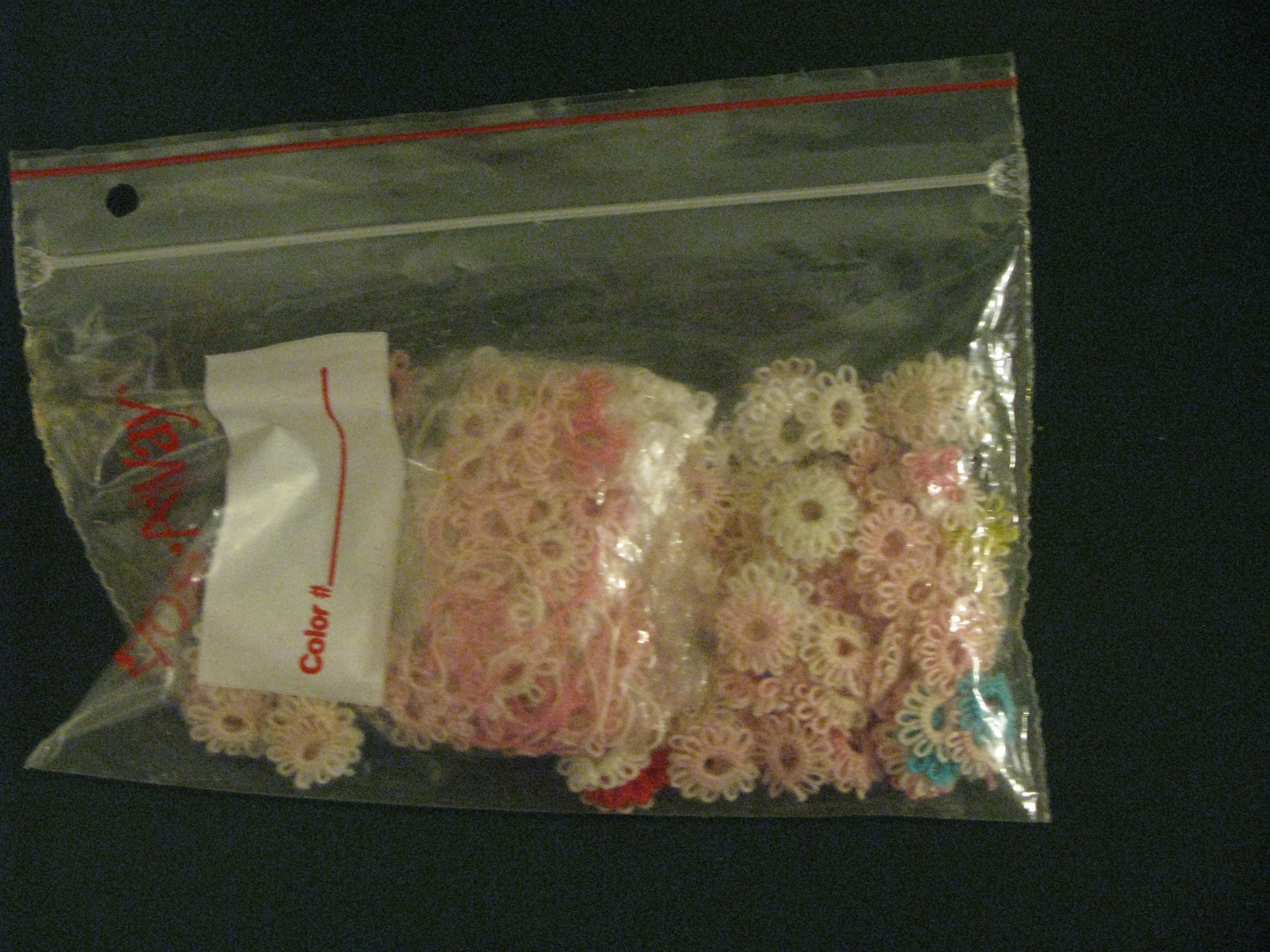 This baggie of tatted pieces was included in that box. Great for embellishing ‘stuff’. Just look on Etsy under ‘tatted’. FYI Tattoos will also come up in your search. Not what I’m referring to here π