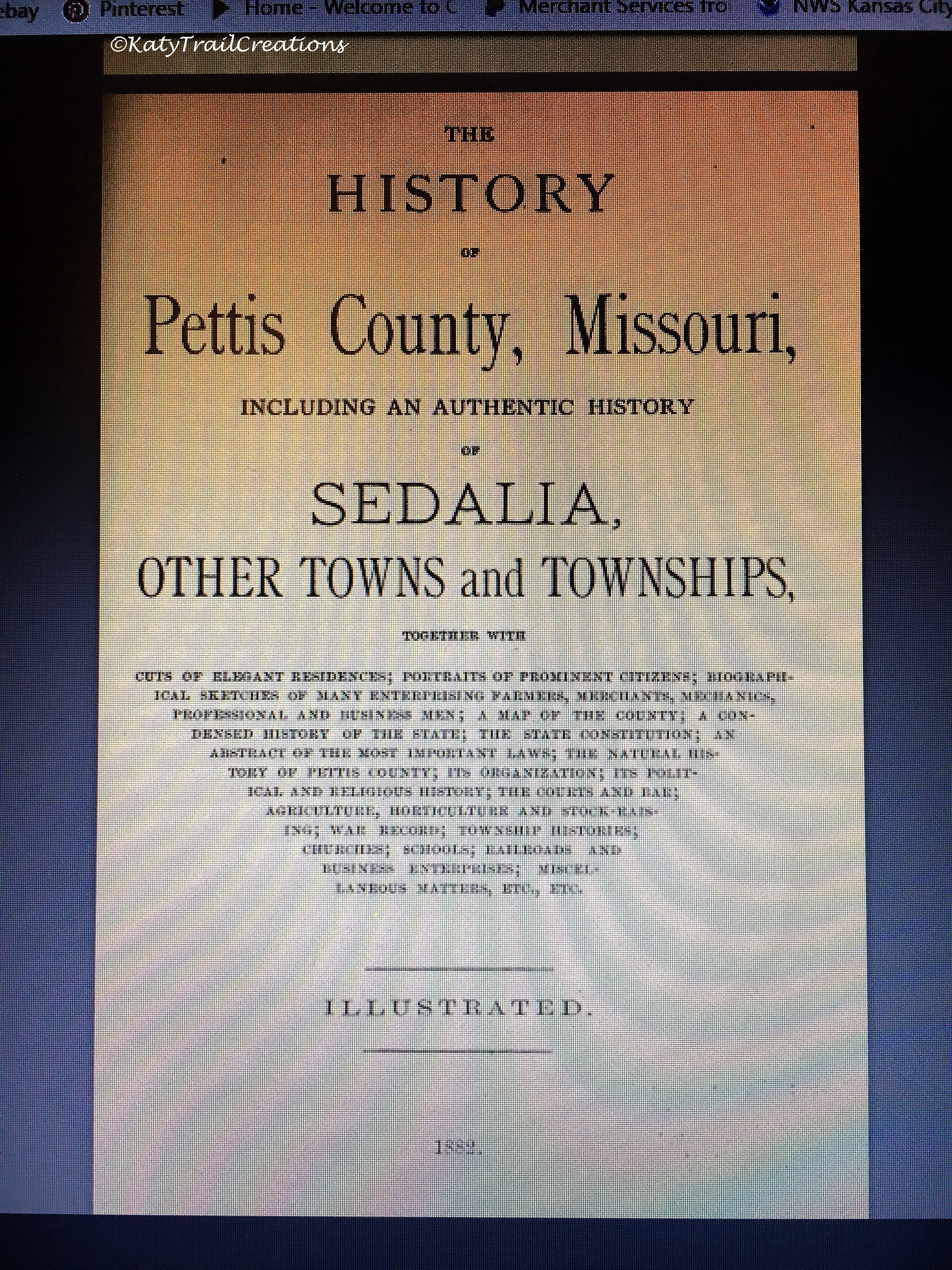 April 9, 2017April 9, 2017 slfinnell History of Pettis County1882 Share this: Email a link to a friend (Opens in new window) Email Tweet Print (Opens in new window) Print Share on TumblrPocket Share on Reddit (Opens in new window) Reddit Like Loading...