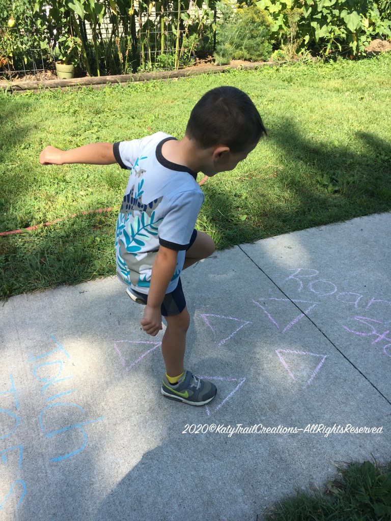 Sidewalks. One more idea, use a long sidewalk or driveway if you’re able, as a road to Walmart, an ocean to swim in or hot lava if you step on the cracks. The minds of children are so open and can take them anywhere with a little creativity. Just Take It Outside!