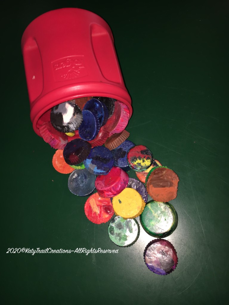 1. I’m JUST getting to your blog now that we are almost done! You are one busy woman. I have a stash of old crayons as well as a huge chunk of bees wax. The large chunky crayons look like an idea I may need to put into action. I too use the plastic coffee containers for lots of things. Birds of a feather.
