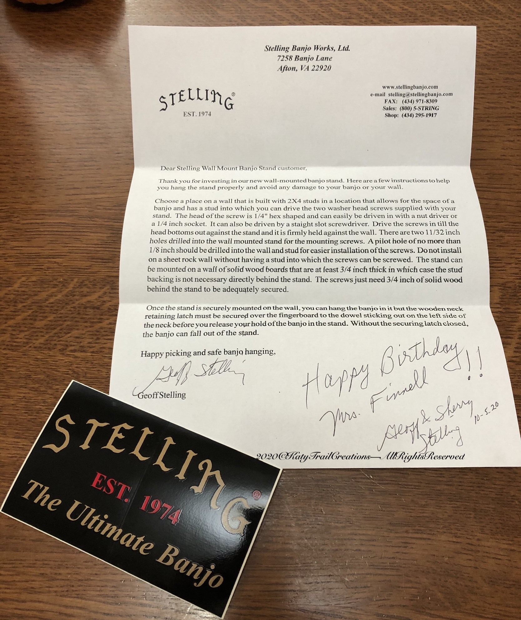 Continuing on with something good now. For your’s truly, another birthday has passed and I hope it doesn’t make anyone envious of the newest addition to my banjo collection. It’s not just “Another banjo” as my daughters have exclaimed a few times—ok more than a few times. My dear husband purchased a banjo wall wall mount for my latest acquisition, my Stelling. I have wanted a 5-string Stelling for as long as I have known of their existence. And last year, he found one for me. It’s a 1978 5-string Bellflower with rare blonde maple finish. The first Bellflower was built specifically for Hub Nitchie in 1975 who was founder of Banjo Newsletter, my preferred source of banjo playing inspiration. This one was previously owned, loved and played by Beth Mead, banjo player extraordinaire, and reconditioned by Geoff Stelling of Stelling Banjo Works. It has it’s own beautiful sound–likely from its unique Tony Pass Wood Rim–and I am so stoked to have it in my collection! And yes, sharing a photo today for your viewing enjoyment. By the way, Geoff Stelling has just been inducted into the Amercan Banjo Museum! Sometime I’ll share a tune with it as well. Did I mention Grandma played Hawaiian guitar, accordian and the organ? Well, now I have.
