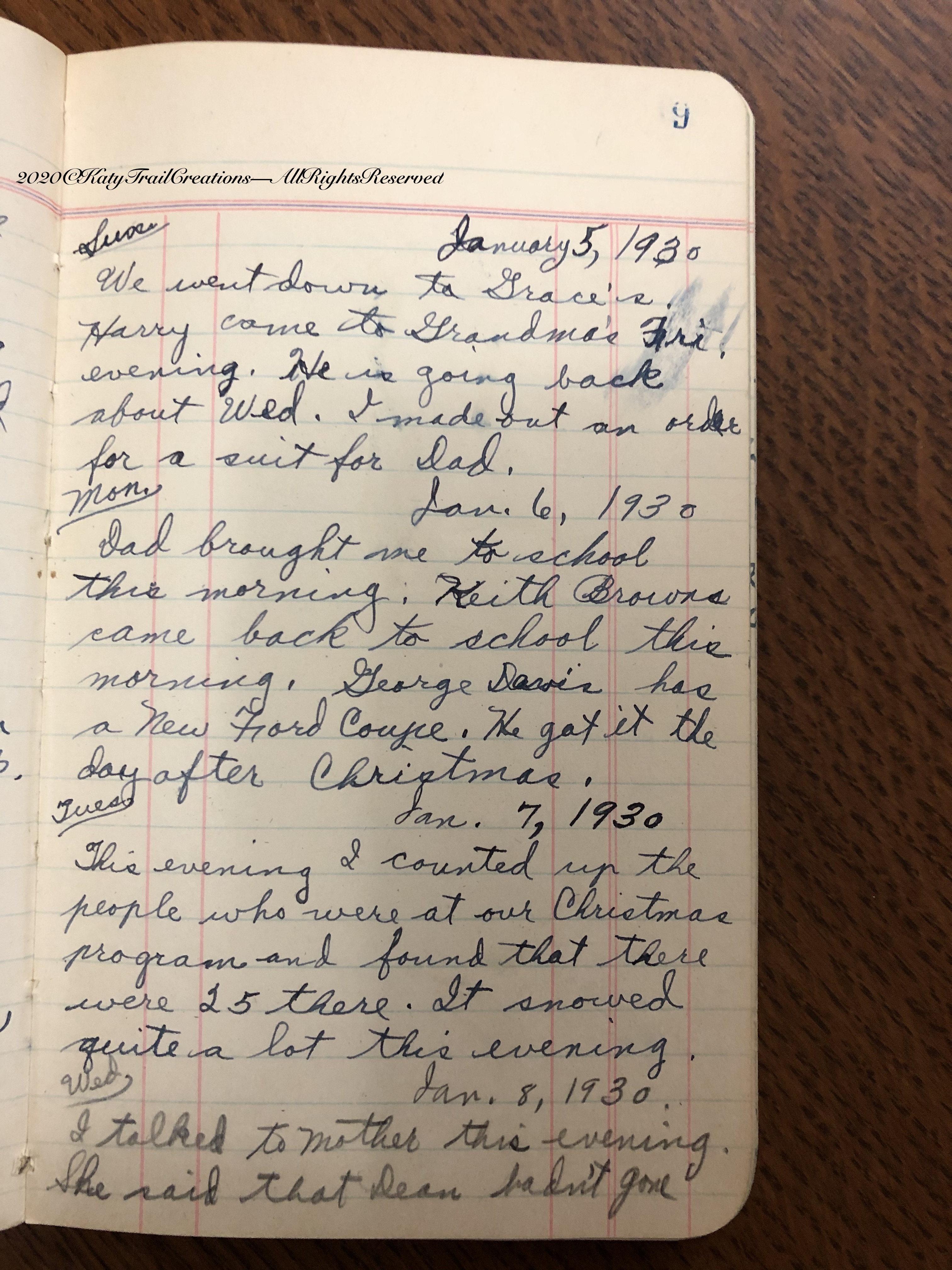 Pg. 9 — Grandma’s Day Journal– My Hunter Family Collection