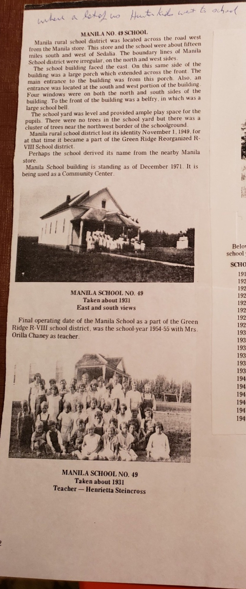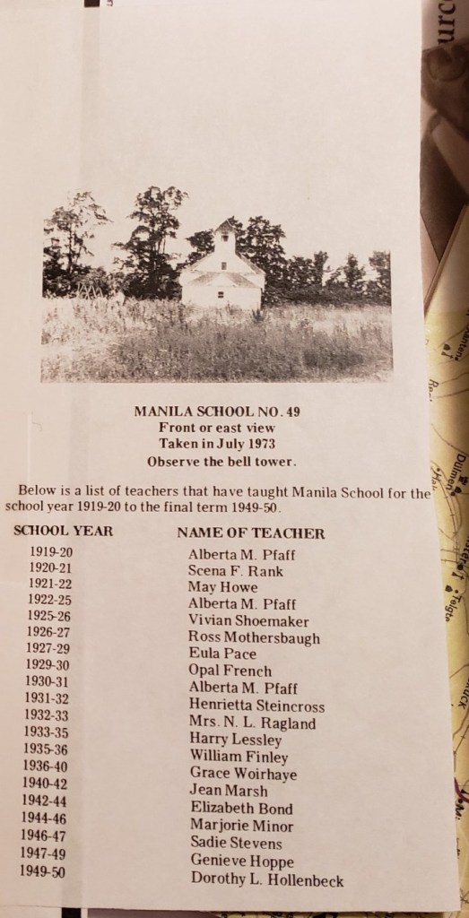 Having a history of past teachers is interesting to look back on. I see surnames of families who are still around. Our current sheriff is a Bond. Mothersbaugh is the last name of one of the band members of Devo, and later in the cartoon Yo Gabba Gabba. I’ve been told there is local connection but I’m won’t swear by it. It would be fun to investigate. I could also point out that Orilla Chaney, the last teacher in 1954-55, was related. Teaching runs in the family –and you could also say our roots run deep around here.