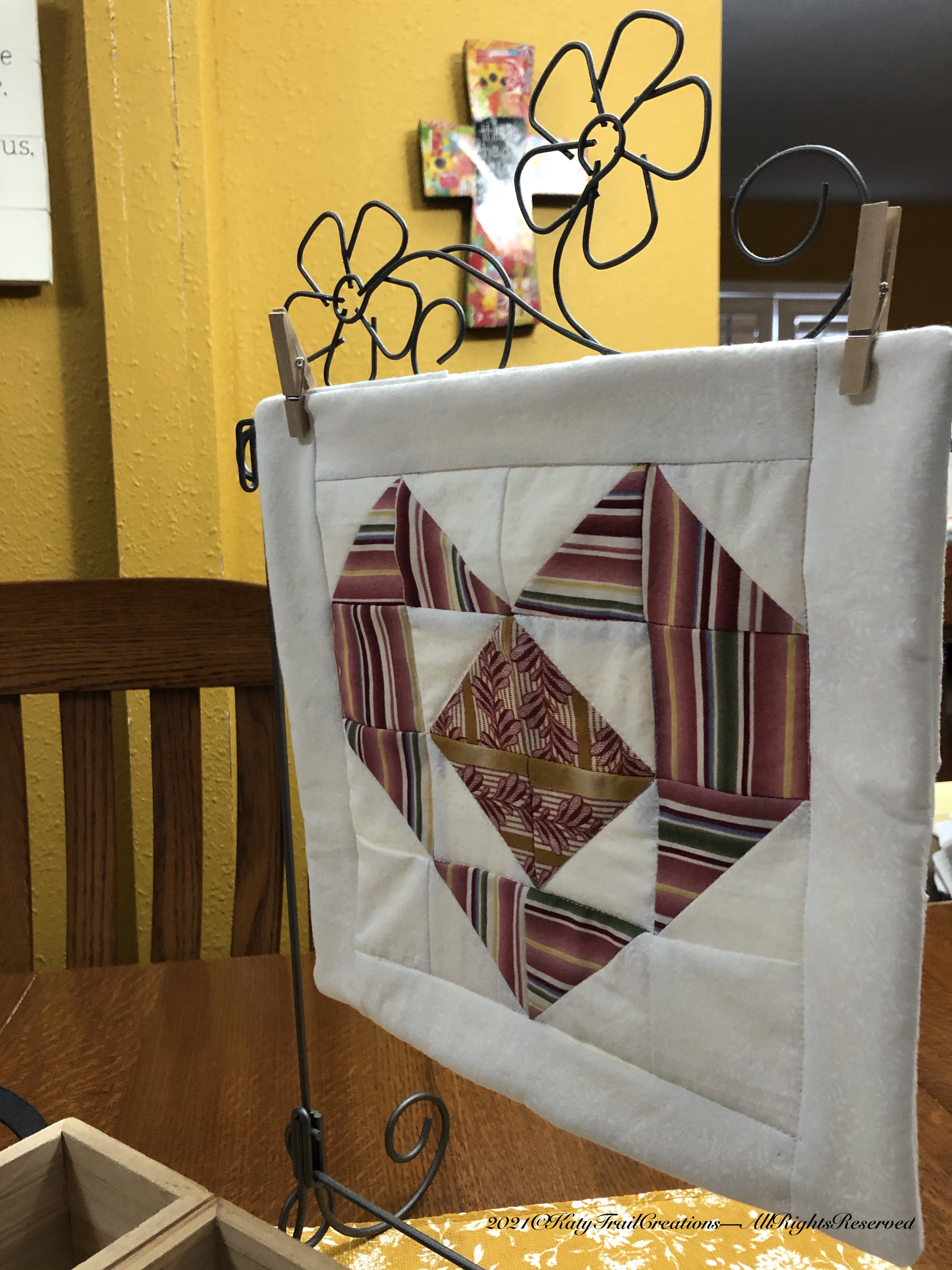 Last weekend I worked on a little something for myself. My test project was a Valentine mini quilt since I gave away one of my everyday mini quilts. The one I had displayed was for Christmas and it was time to change it up. The good thing about this test is that it was made with scraps so I’m always happy when they turn out ok. I didn’t plan the stripes to be perfectly symmetrical so hope you don’t expect perfection. 😉