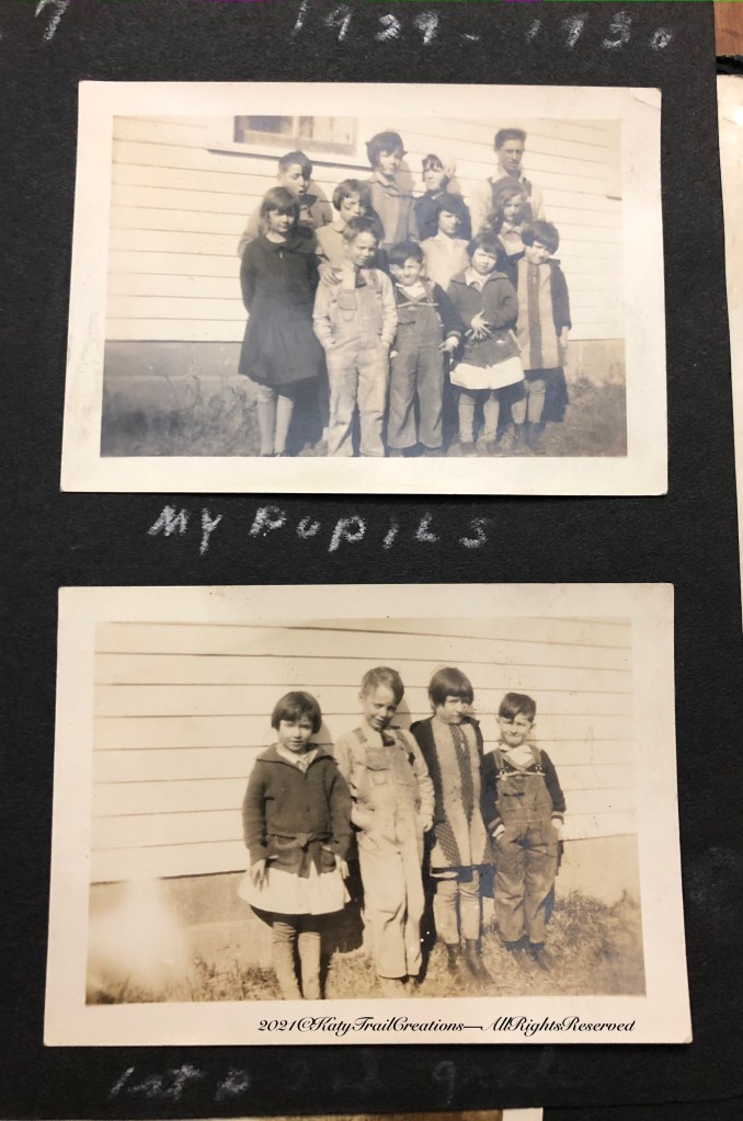 Every age and size in the little one room schoolhouse. With the mixed ages, I guarantee there was plenty of help to go around. Inez utilized her skills with her grandchildren in later years when we were all gathered at her place after the schoolbus dropped us off. There were 5 to 6 of us every afternoon assembled there anticipating a snack and an afternoon cartoon on her black and white. When weather was nice, we’d be outdoors doing kid stuff. When not, we made do with dominoes, dressing up in her petticoat collection, picking tunes out on her organ, or perusing her World Book collection. Homework? Well, some of us did ours. Others waited til they went home…..I think. 😉