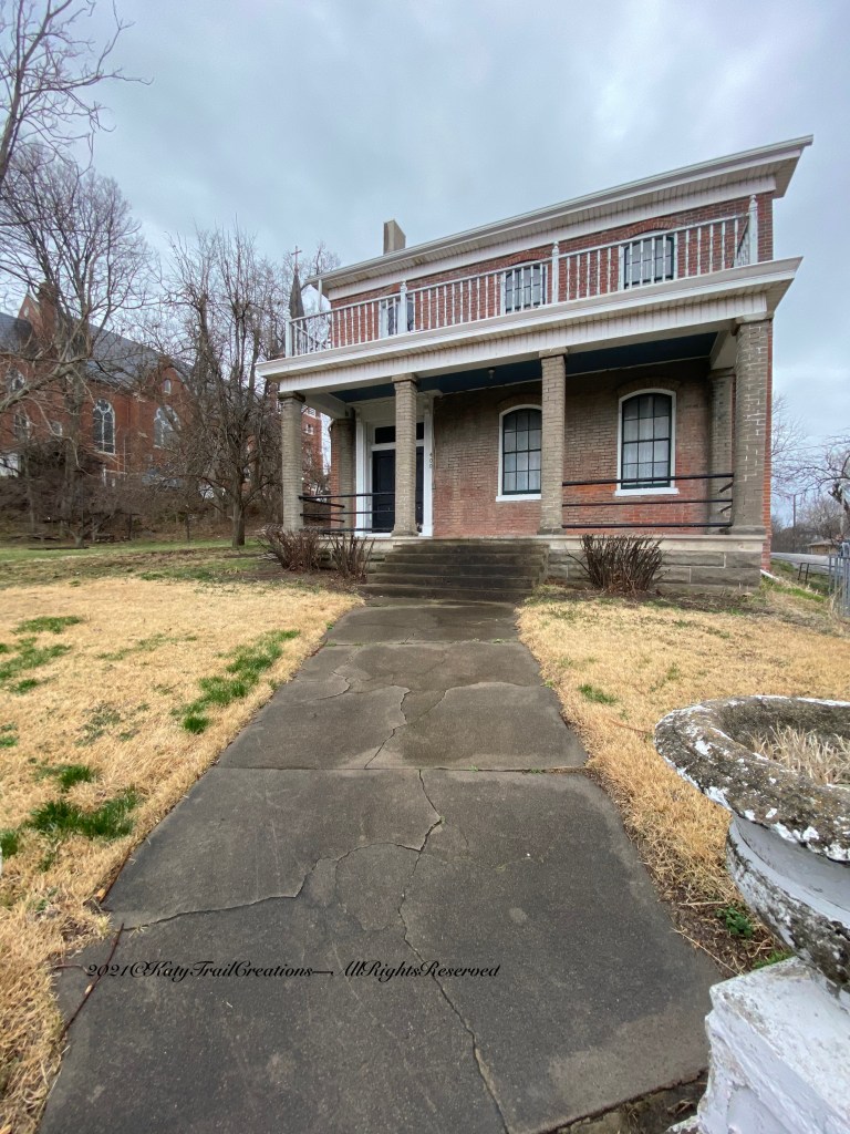 On 11/5/2020 it was listed for sale for $125,000 and the listing states it is made from locally made bricks. Listing photos show that the balcony view is overlooking the Missouri River. A pretty grand home from back in the day for a river town in Missouri.