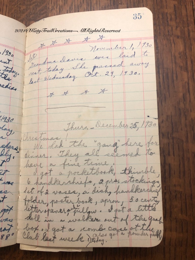 Pg. 35— Grandma’s Day Journal– My Hunter Family Collection