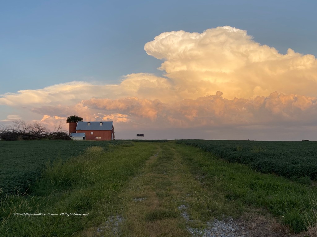 August 29, 2021. Just a couple of old souls looking at clouds forming in the distance. Our scouting took us to Randall Road—my maiden name by the way. Some of the family used to live out that direction in ‘the olden days’. I have no idea exactly where, but those places are probably long gone by now. What we did capture was this gorgeous barn with the cloud backdrop. Gates count for doors. Fields & trees are bonus. Hope you enjoy our wanderings.