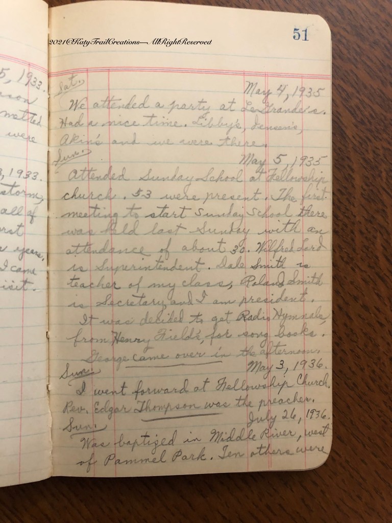 Sun. May 3, 1936 I went forward at Fellowship Church. Rev. Edgar Thompson was the preacher.