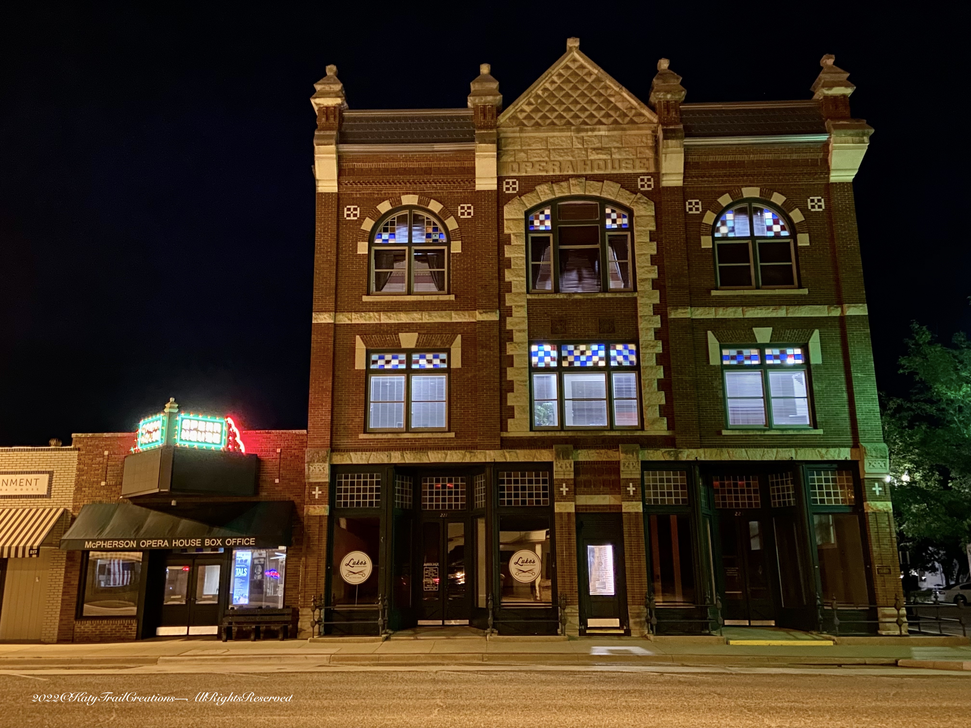 My 3rd favorite to make this year’s cut is the McPherson Opera House in McPherson, Kansas. It was the first time I took a day versus evening photo to compare the views. I’m glad we did. I imagine all the tuxedos and formal dresses walking through the doors for an evening of entertainment. But I’m into fabric and sewing. So it figures, right?!