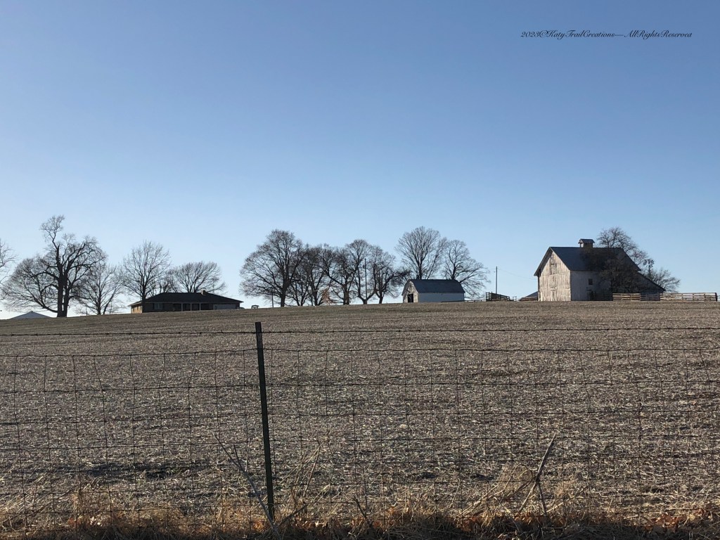 Due to the lighting, I couldn’t get a good front view of the home. But I was able to capture more doors on the side of the barn and outbuildings. A barren, stubbled field awaits spring planting. I am curious now what crops they chose for this year. It’s been a very hard year for our local farmers. The map below will tell the tale best.