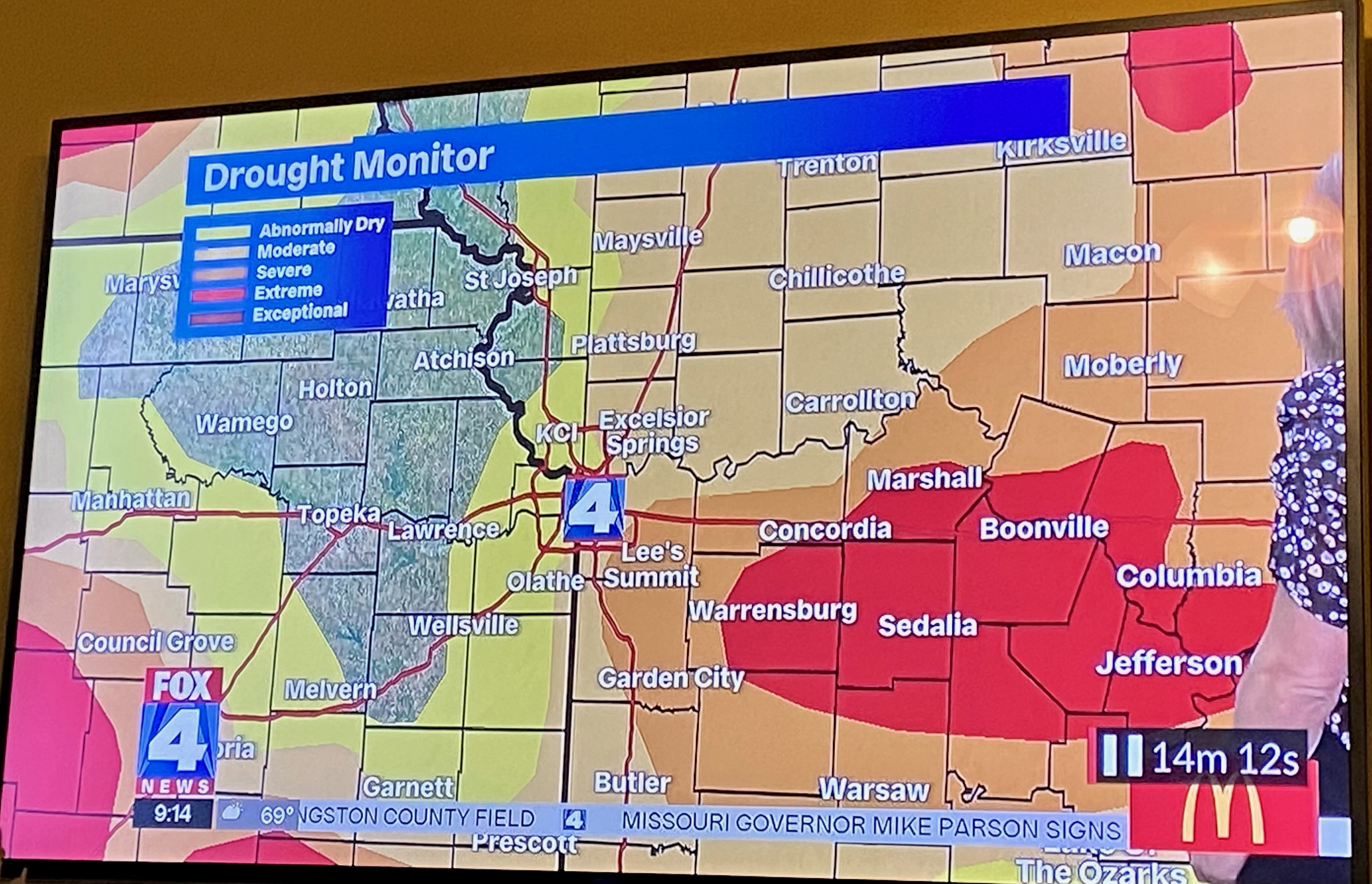 We are in Sedalia and under Extreme drought conditions. Today we finally got some rain, but not enough to relieve this strain for our farmers. Wheat is often too short to combine when there is not enough rain. It ripens too early. That’s just one example of the struggles faced. Our governor signed an executive order May 31 declaring the drought so it’s paper official.