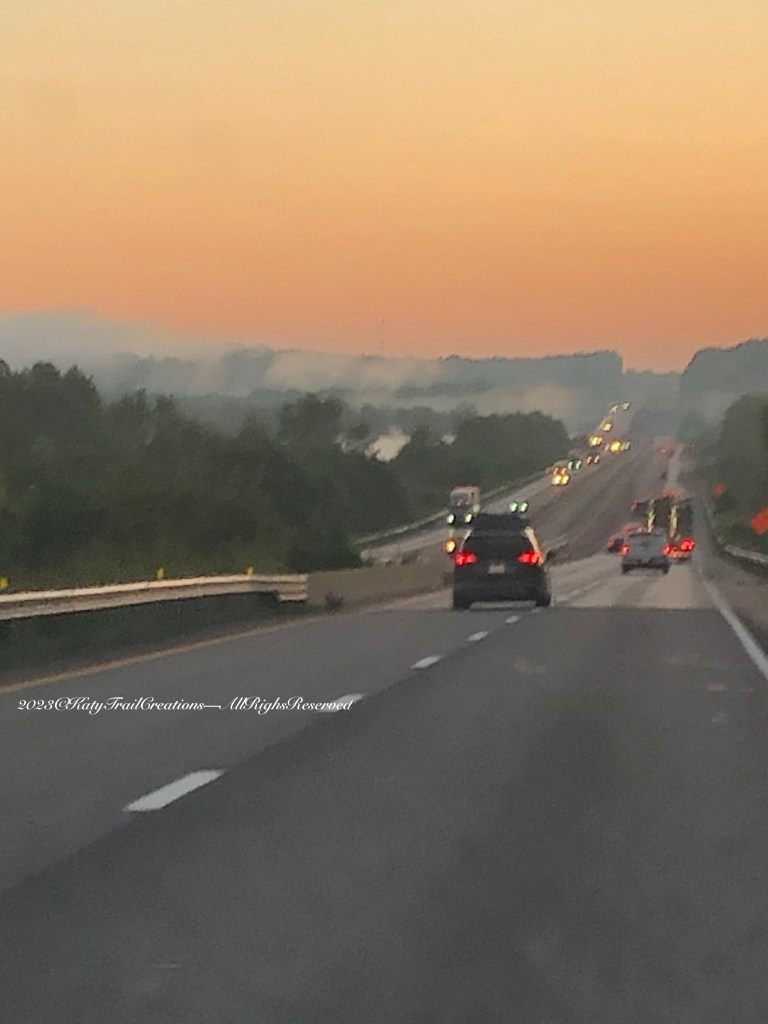 Love taking pics of fog on the Missouri River these trips. Golden hour is so stunning. Now if they could just get that road construction finished.