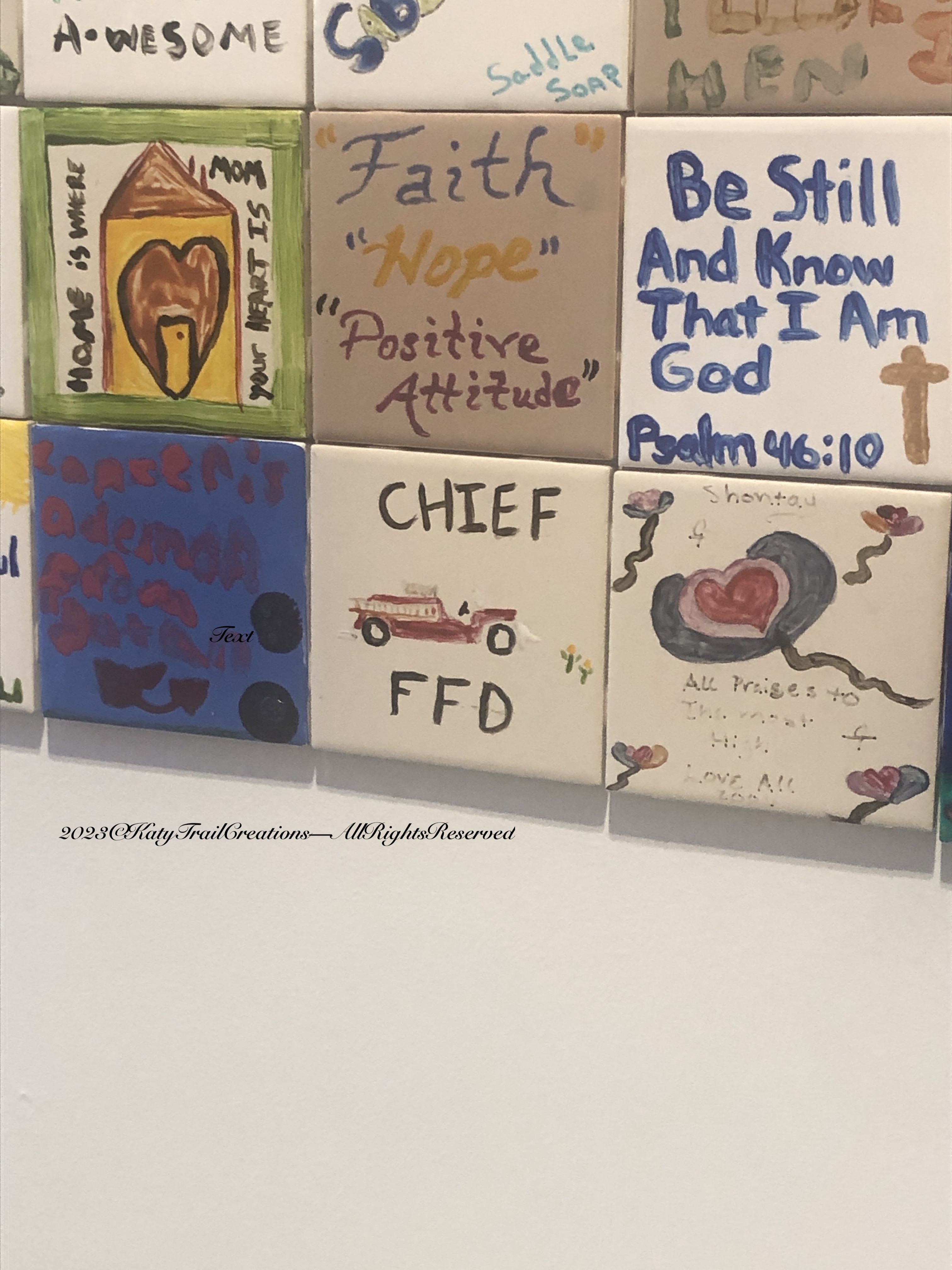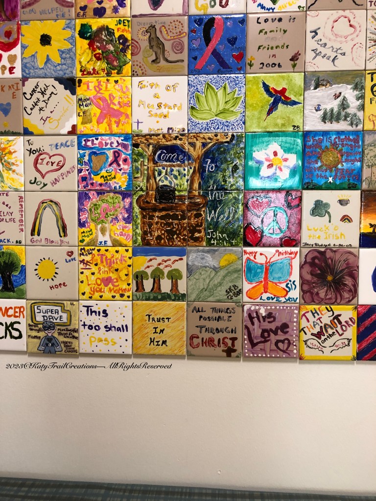 1. Doors are important, coffee even more so, but the tiles, well, the tiles tell stories of families maneuvering a challenging medical highway. Our local Mass General Cancer center is about ten minutes from our home. The parking lot is always busy, and the waiting areas are sometimes standing room only. Families on this journey have been through a lot and prayers to each and every one.