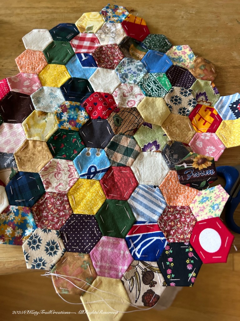 Just sharing what’s coming out of the sewing room this week. The EPP, English Paper Piecing, is something new I’m trying. I have a ton of scrap fabric and this is the perfect take-along item for all those doctor appointments. One of those ‘good for the soul’ projects in my humble opinion. The mini quilt on the right shows some quilt lines that are known by quilters. Feather motifs, Ribbon Candy and Orange Peel, respectfully. I am a beginner ‘featherer’ as I still draw mine on before stitching. So the blue lines disappear with a little water on a cotton swab. Or in certain instances, a spray bottle filled with cold distilled water will remove them when they seem stubborn. Just food for thought for my crafty visitors.