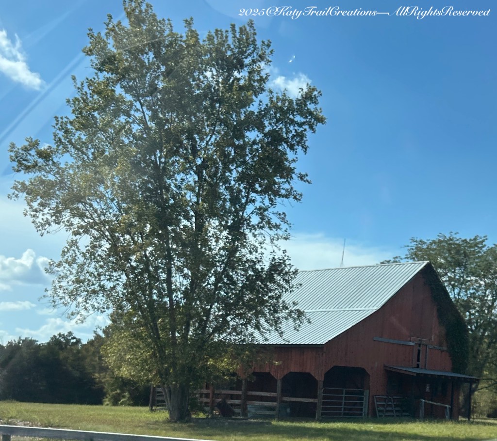 I see WordPress still has blur when I try to add captions. So I’ll just say this about the photos. Highway N is a pretty drive. As you can see there are more rural scenes the further down the road you go. It made me smile to see the chicken run in the first photo. Second shows all the trees that should be showstoppers once foliage changes. And then the last photo of the red barn. Quintessential paint color and a new tin roof. Can you see all the vines growing along the back? Could be honeysuckle or another ivy. I would be for removing it pretty soon though. It is hard on structures.