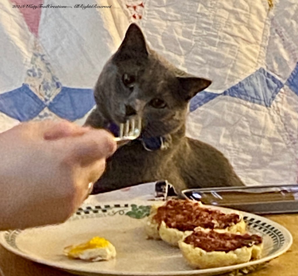She was eyeing my last bite of egg this morning and never once tried to get some for herself. She has been trying to eat the flocking off the Christmas tree though. That life lesson has not been learned yet.