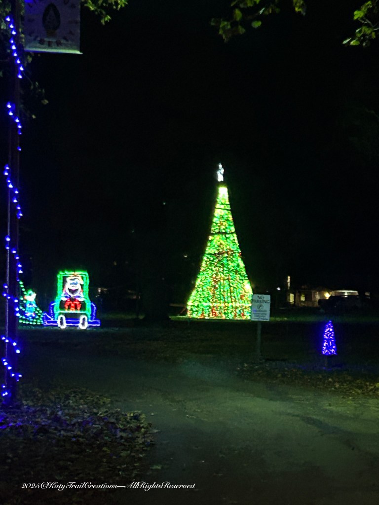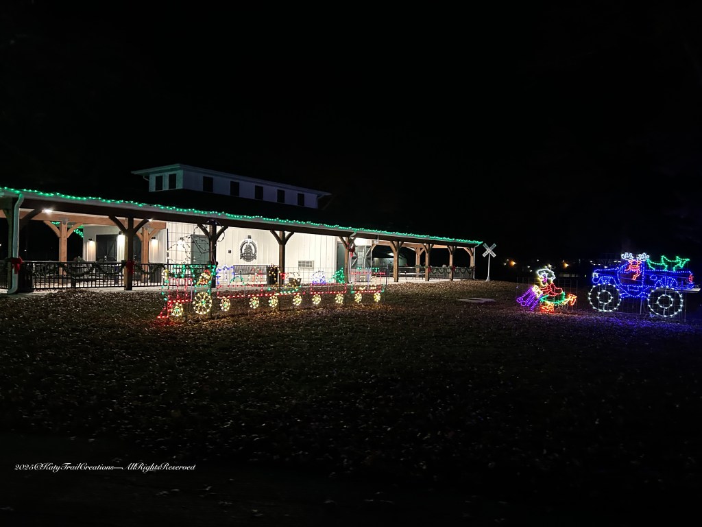 There is so much more to see as lighted displays line the drive all the way from the entrance to the end of the lane. I just chose a few to keep it simple. And the final photo is the brand new building to house the kid’s train for safe-keeping. One of Sedalia’s finer accomplishments lately. You can’t go wrong with making improvements for our local children!