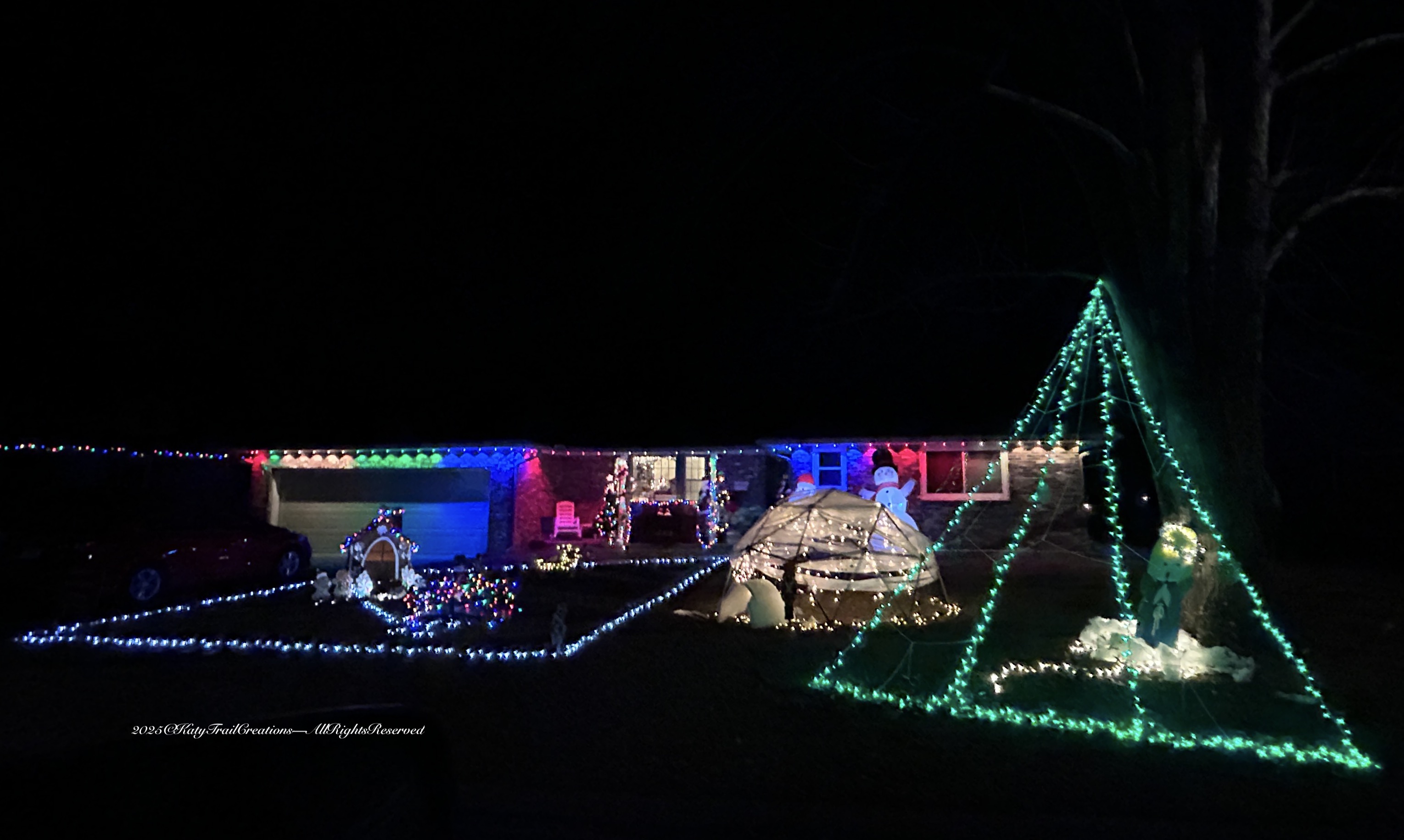I think you all got the gist of the lights in the park so I decided to switch gears. Sedalia’s yearly Christmas Light Contest was concluded just days before my last post and I’d like to share my drive-bys of the winners reverse order. I’m starting with the Honorable Mention.