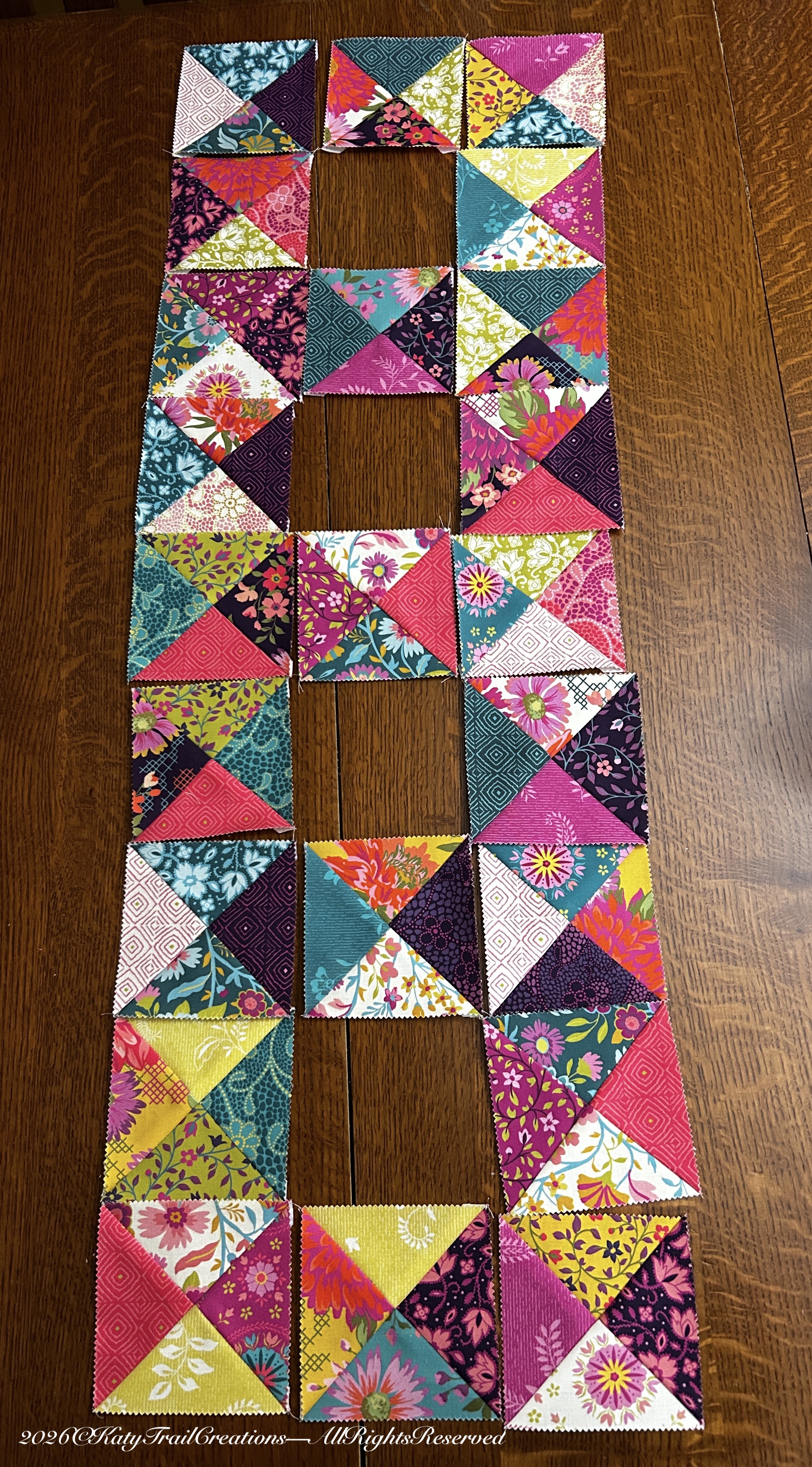 Using Hourglass Blocks seemed to work out. When the fabric comes in 5-inch squares, your methods to use them are a little bit more limited.