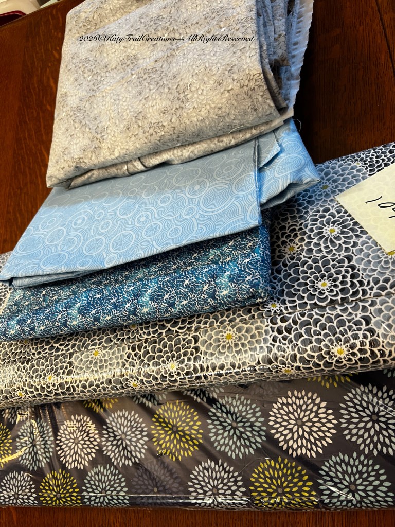 I have been buried in. Not in snow, thankfully, although we could use the precipitation for the farmers. But in finding just the right combination of fabrics for a quilt request. I am determined to use only what I have on hand for this one. And once a fabric hoarder starts investigating their stash, there’s no turning back. A quilter will search high and low to have the perfect combination of fabrics for said quilt. As I was choosing photos for today’s post, I happened along an Inez’s Clipping that depicts the mess I’ve made.