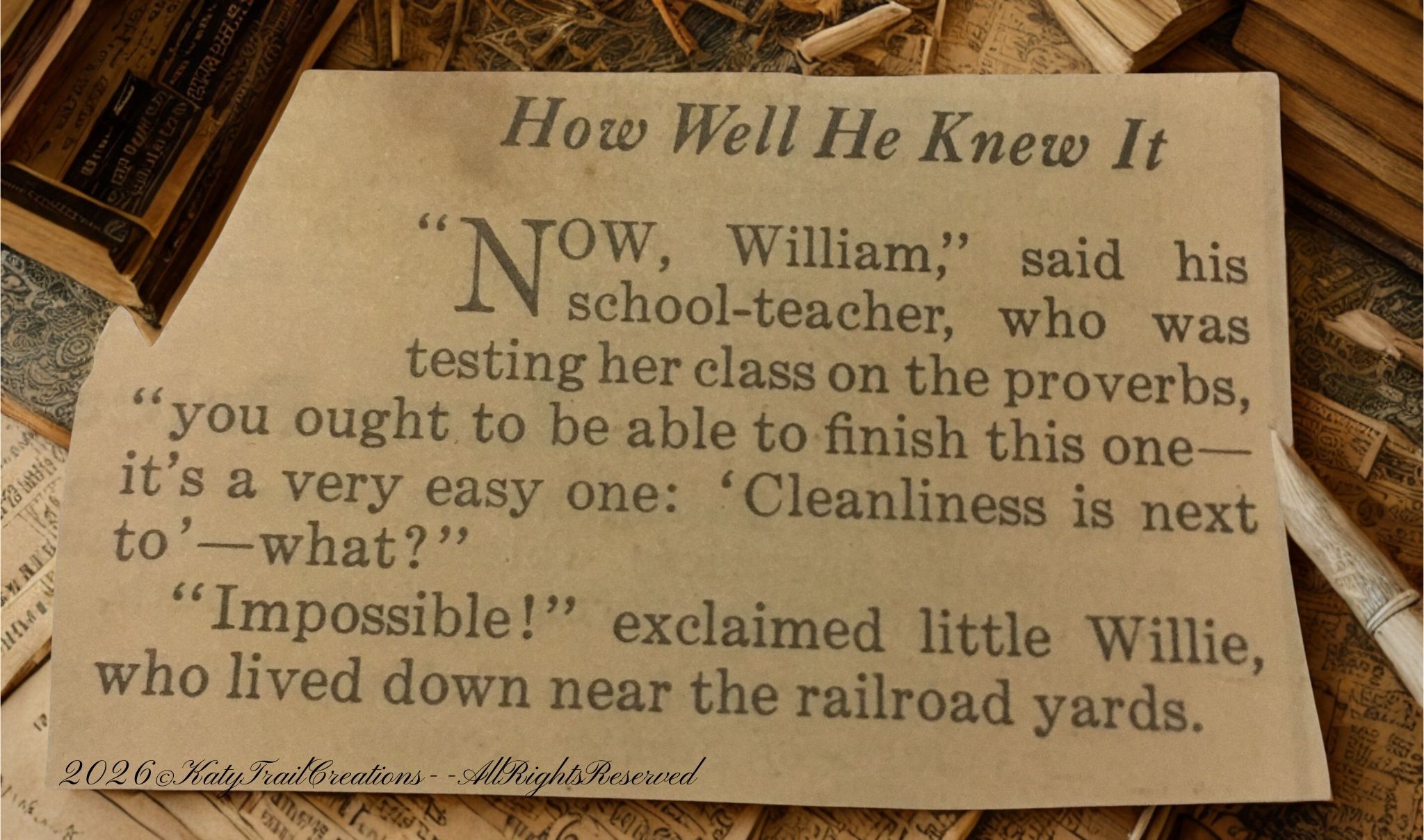 I have been buried in. Not in snow, thankfully, although we could use the precipitation for the farmers. But in finding just the right combination of fabrics for a quilt request. I am determined to use only what I have on hand for this one. And once a fabric hoarder starts investigating their stash, there’s no turning back. A quilter will search high and low to have the perfect combination of fabrics for said quilt. As I was choosing photos for today’s post, I happened along an Inez’s Clipping that depicts the mess I’ve made.