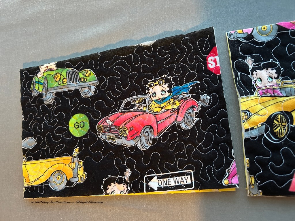 In other news, I found a way to use up some more of those fabric scraps. As the title says, I am sharing a quilting option. Many don’t realize the various items you can create with quilted fabric. And when quilting, you have to check the thread tension when changing bobbins. Or at least I find it very helpful to do so. But the downside is that you’re left with portions of quilted fabric that pile up. And being the frugal type, I try to find ways to use these pieces.