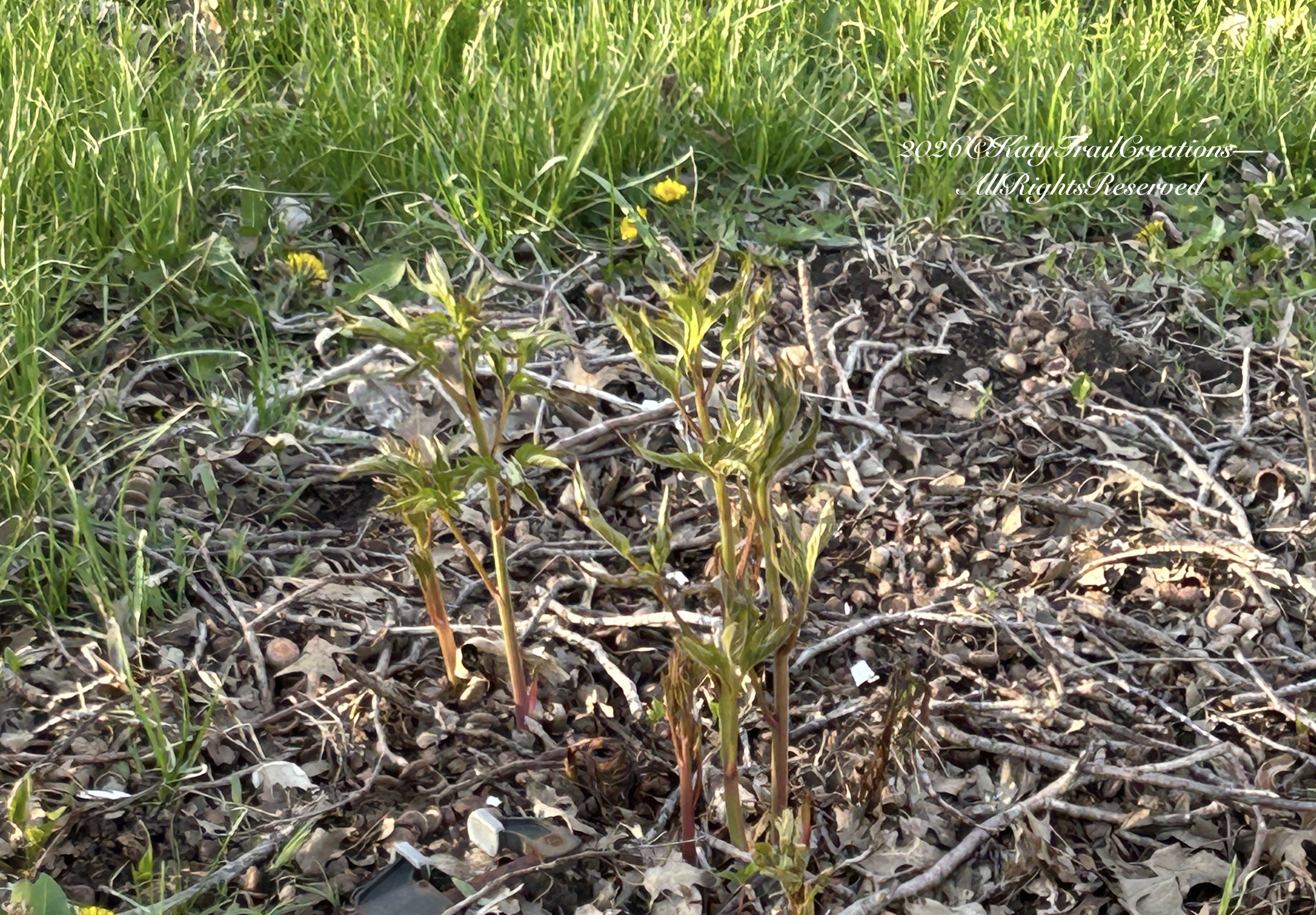 I’m happy to say my efforts to protect Grandma Inez’s transplanted peonies have survived some pretty cold events this winter here in Mid-Missouri. The first year of being restarted is often when plants are most vulnerable. These have now been moved for the 4th time in their lifespan. My dear sister & I split these cuttings and both of us saw them come up this spring. Pretty early for them I will say. But when you have a couple 80-90 degree days, it doesn’t take long for the ground to warm up. We both were so relieved that our green thumbs got us thru the transplant transition.